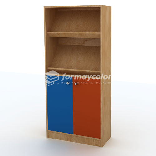 Estante con 2 puertas inferiores. Confeccionado en madera terciada de 18 mm de espesor, trasera de 6 mm. Barnizado natural mate, no tóxico. Considera aplicaciones de formica, color a elección.