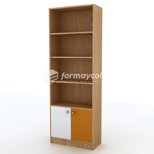 Estante con 2 puertas inferiores. Confeccionado en madera terciada de 18 mm de espesor, trasera de 6 mm. Barnizado natural mate, no tóxico. Considera aplicaciones de formica, color a elección.